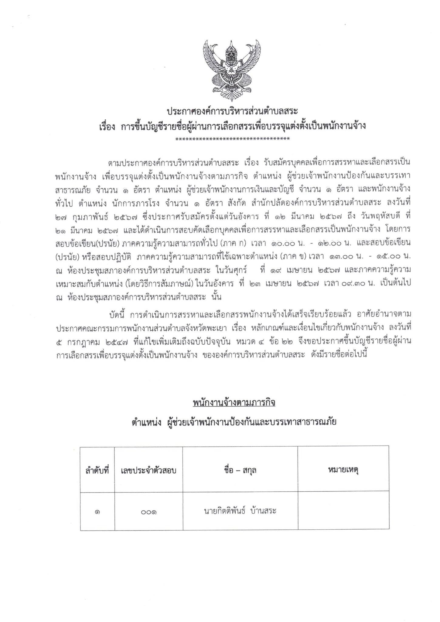 ประกาศการขึ้นบัญชีรายชื่อผู้ผ่านการเลือกสรรเพื่อบรรจุแต่งตั้งเป็นพนักงานจ้าง ขององค์การบริหารส่วนตำบลสระ 24 เม.ย. 256729 ก.ค. 2025Adminข่าวสารประชาสัมพันธ์, ทั้งหมด, ประกาศรับสมัครงาน/รับโอน (ย้าย) ประกาศการขึ้นบัญชีรายชื่อผู้ผ่านการเลือกสรรเพื่อบรรจุแต่งตั้งเป็นพนักงานจ้าง ขององค์การบริหารส่วนตำบลสระ Post Views: 77
