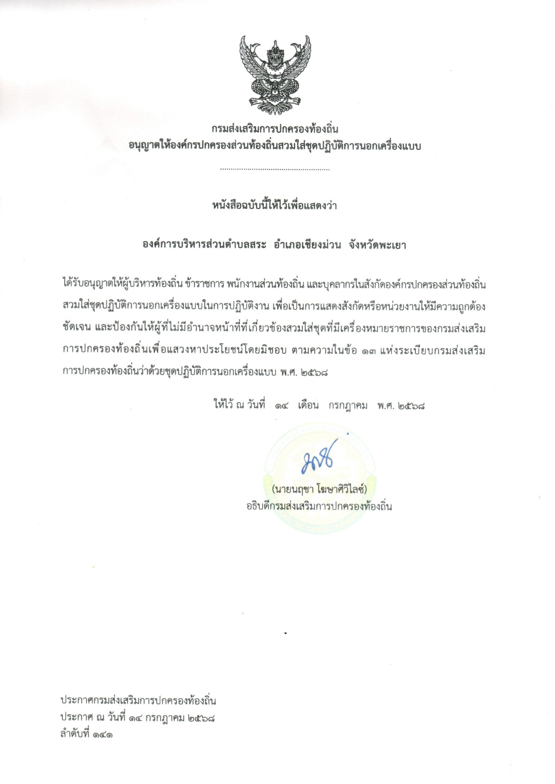 ประกาศองค์การบริหารส่วนตำบลสระ เรื่องกรมส่งเสริมการปกครองส่วนท้องถิ่น อนุญาติให้องค์กรปกครองส่วนท้องถิ่นส่วมใส่ชุดปฏิบัติการนอกเครื่องแบบ 14 ก.ค. 256829 ก.ค. 2025Adminข่าวสารประชาสัมพันธ์, ทั้งหมด Post Views: 48