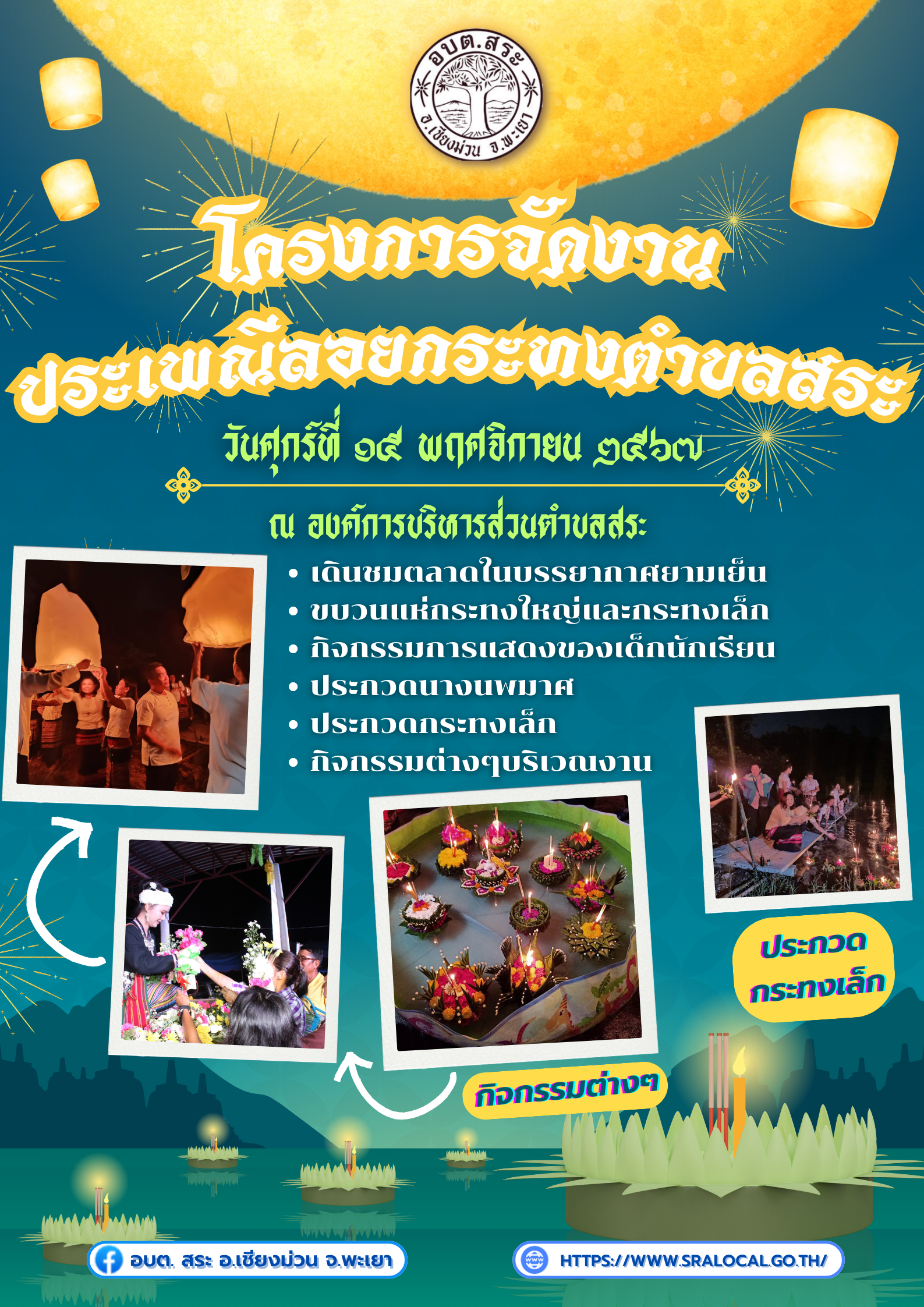 เชิญชวนเที่ยวงานประเพณีลอยกระทงตำบลสระ ประจำปี 2567