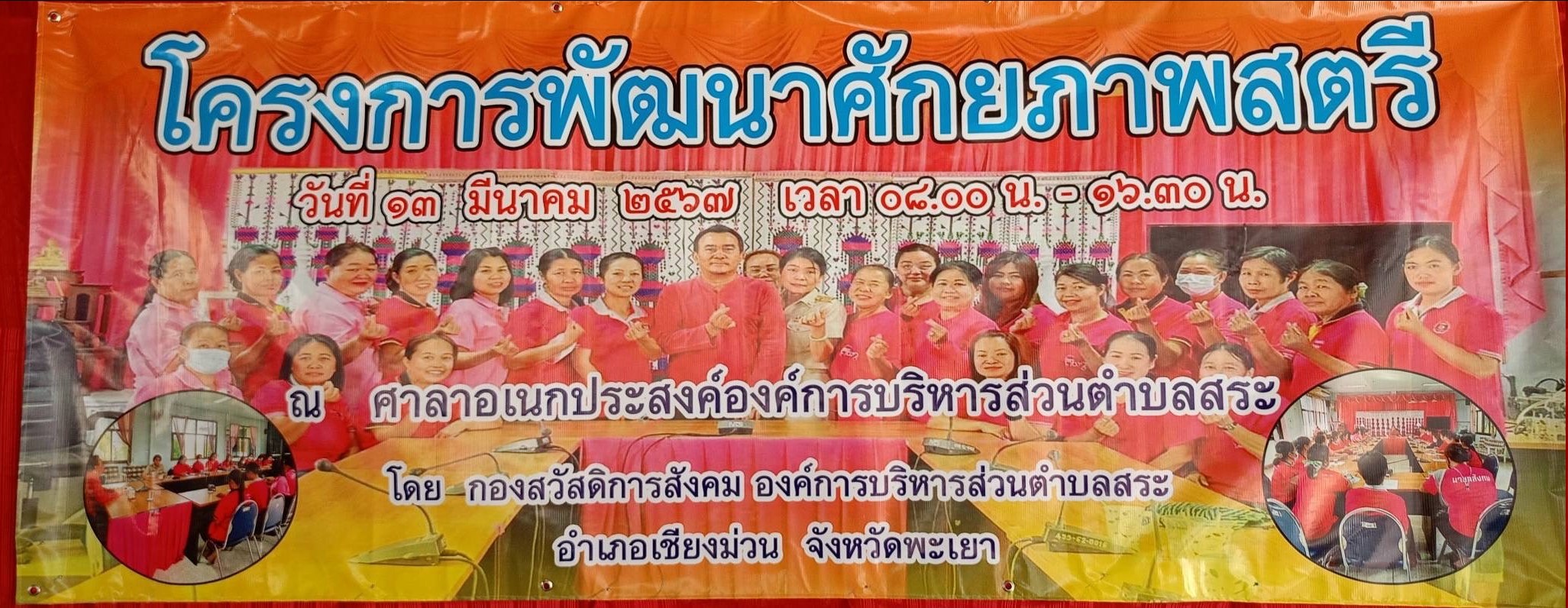 วันที่ 13 มีนาคม 2567 นายสังคม สืบแสน นายกองค์การบริหารส่วนตำบลสระ มอบให้ นายเรไร ไชยลังกา รองนายกองค์การบริหารส่วนตำบลสระ เป็นประธานพิธีเปิดโครงการพัฒนาศักยภาพสตรี ประจำปี พ.ศ. 2567 และ นางมัลลิกา สืบแสน ประธานกลุ่มรวมพลังสตรีตำบลสระ กล่าวรายงาน