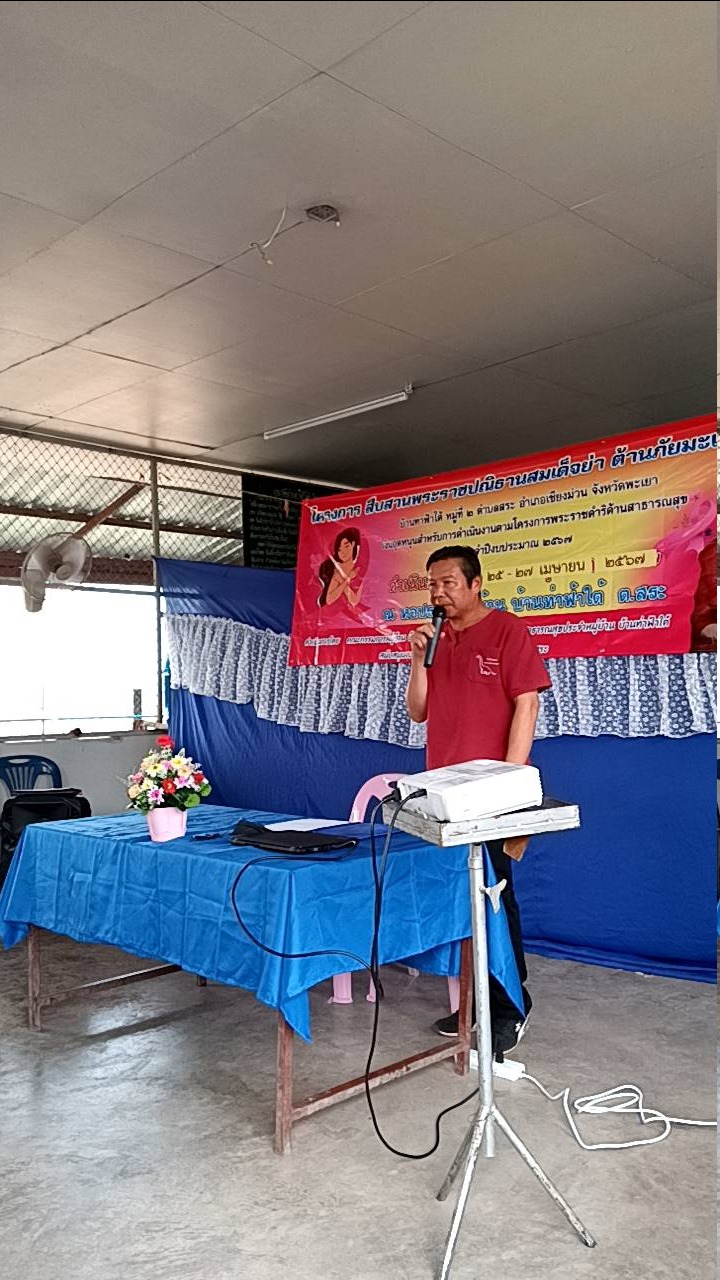 วันที่ 2 พ.ค. 2567 เวลา 09.00 น. นายสังคม สืบแสน นายกองค์การบริหาร ส่วนตำบลสระ เป็นประธานเปิดการอบรม โครงการสืบสานปณิธานสมเด็จย่า ต้านมะเร็งเต้านม บ้านท่าฟ้าใต้ หมู่ที่ 2 ตำบลสระ อำเภอเชียงม่วน จังหวัดพะเยา