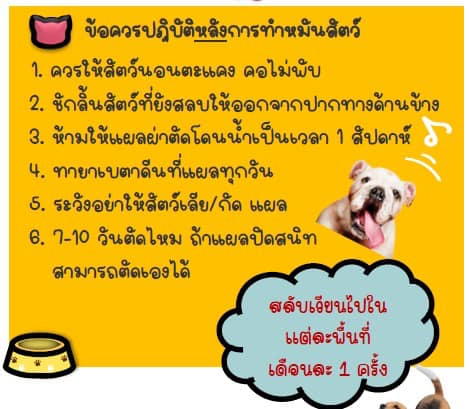 ประชาสัมพันธ์ข้อควรปฏิบัติก่อนและหลังการทำหมันสัตว์